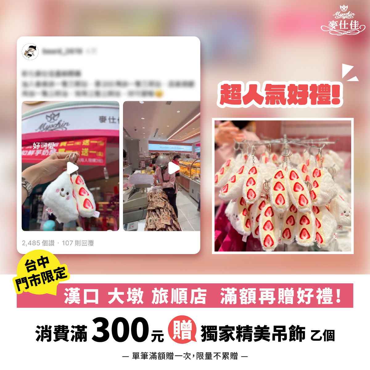 台中的旅順門市是品牌首間以粉色形象打造!