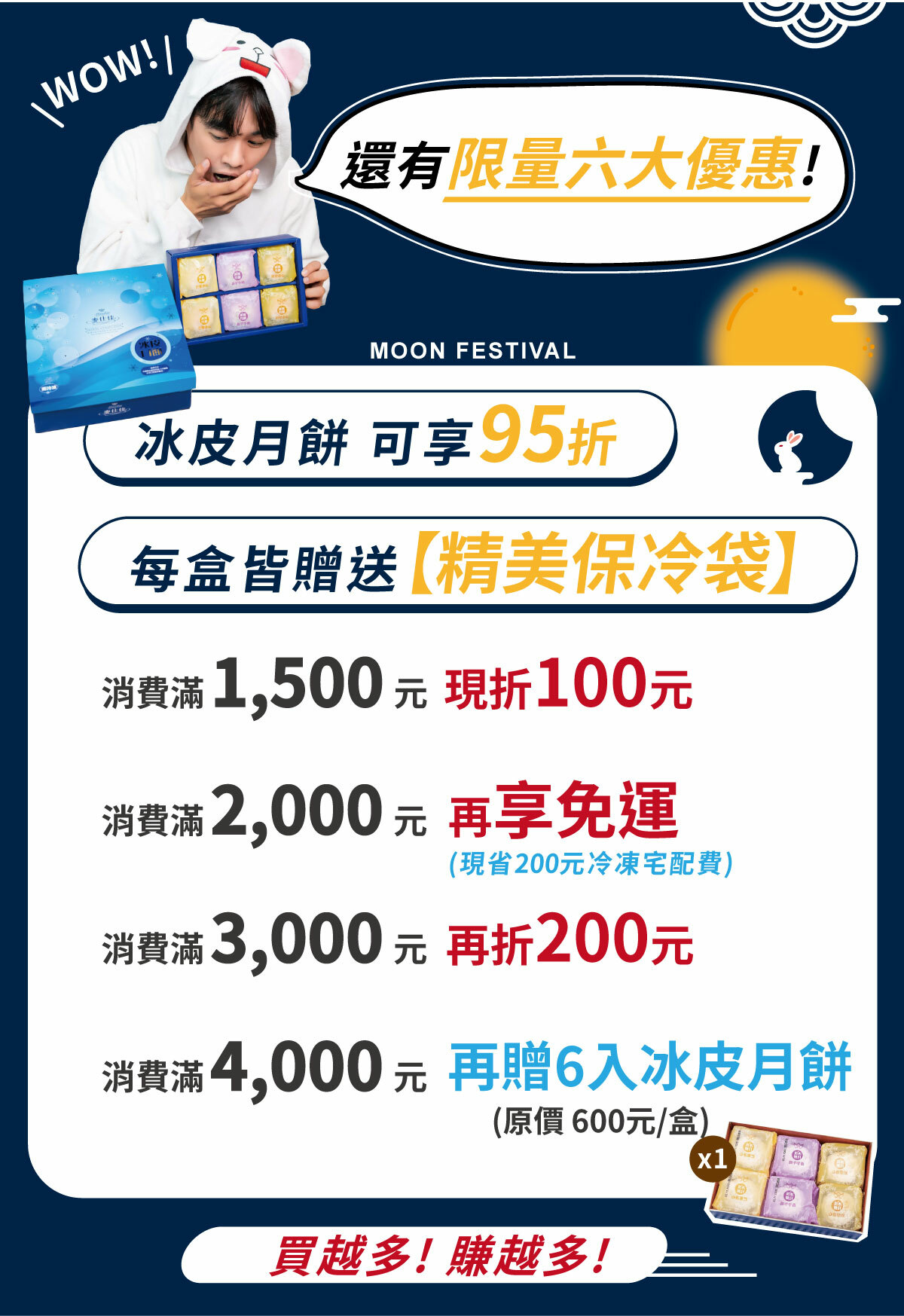 優惠6. 消費滿 4,000元,再贈6入冰皮月餅
