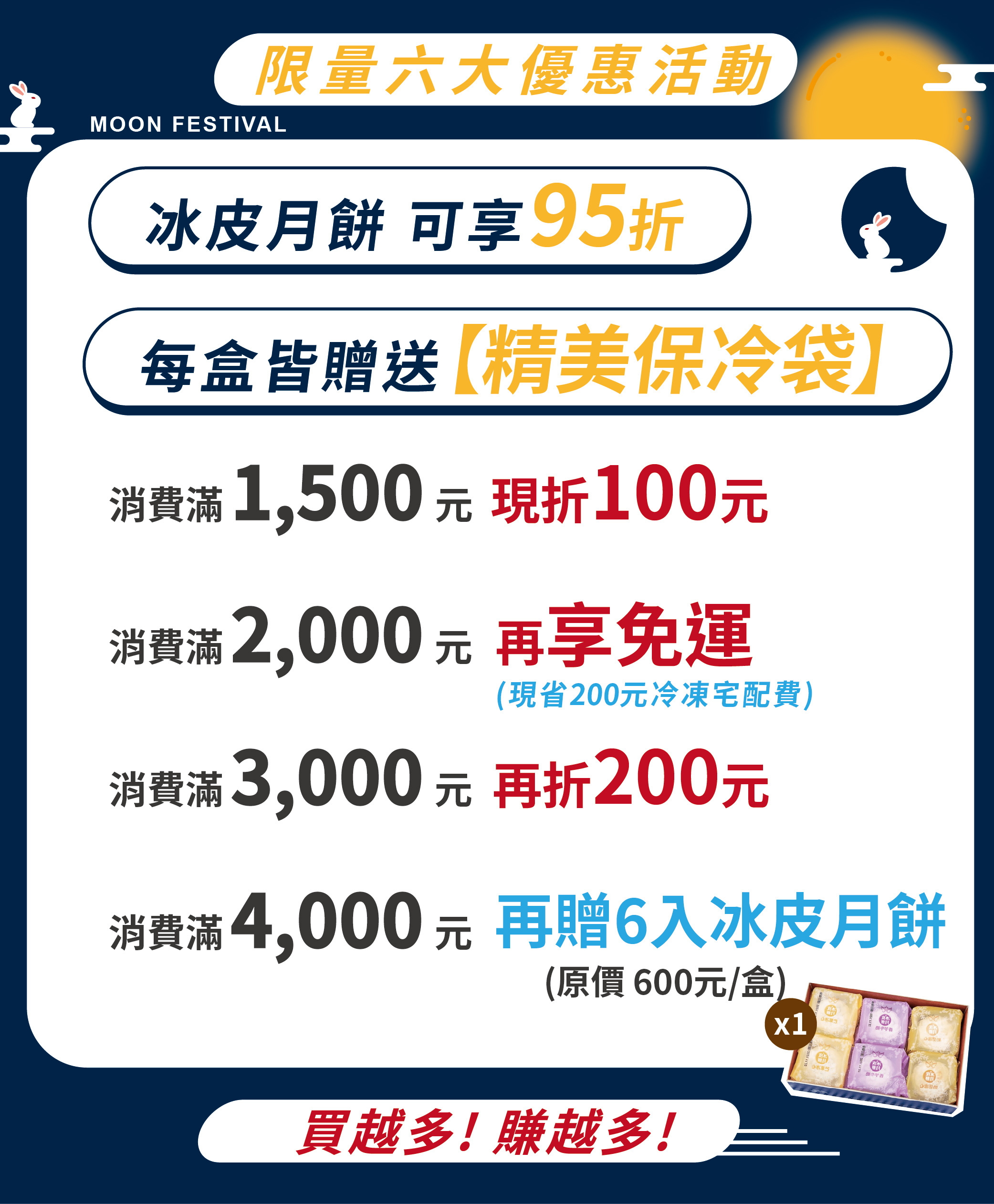 優惠6. 消費滿 4,000元,再贈6入冰皮月餅