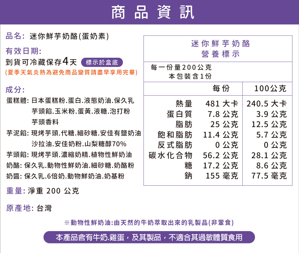 ※迷你鮮芋奶酪_到貨可冷藏保存約4天 (以盒底標示為準)