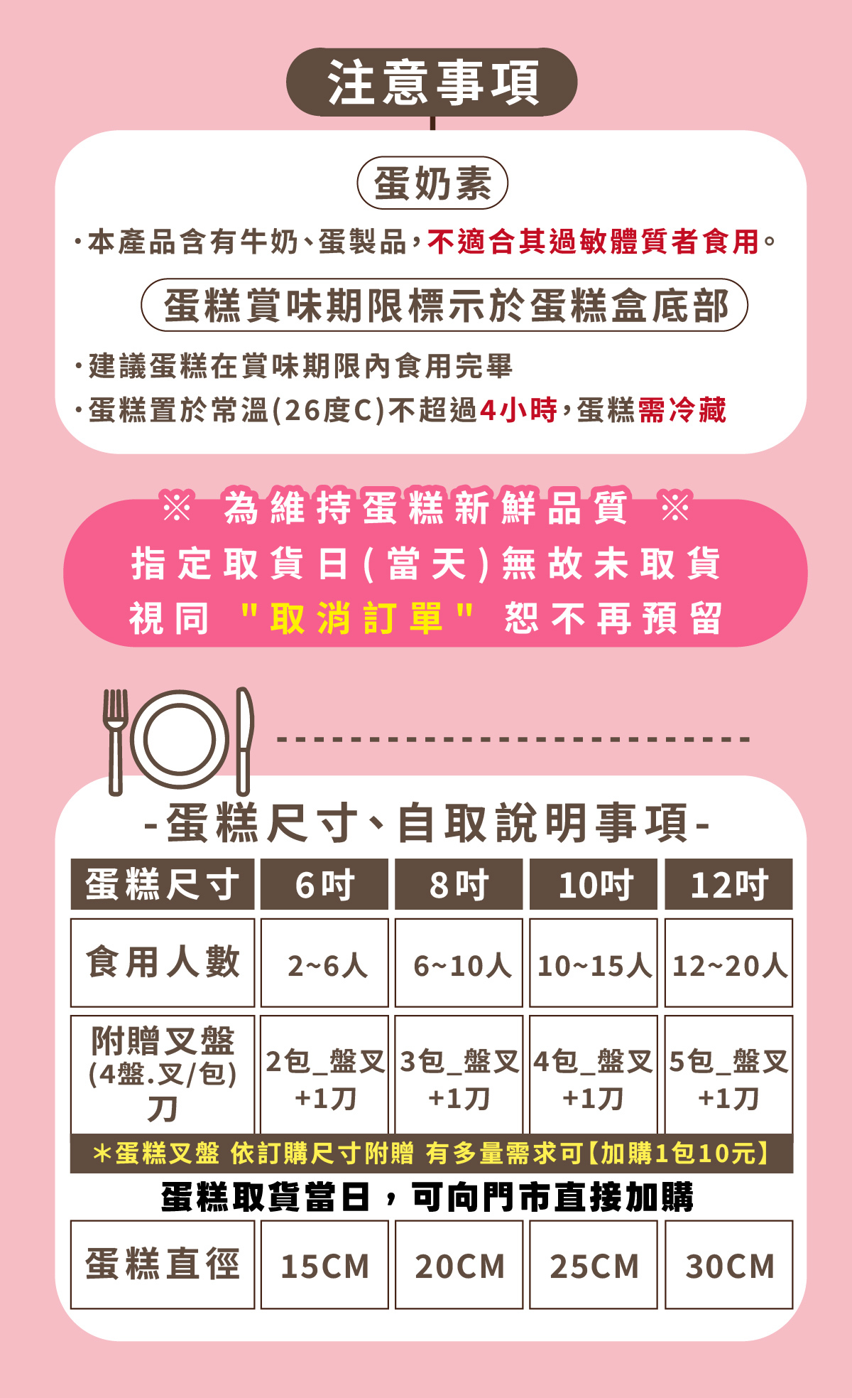 ⚠️ 因應訂單作業流程,商品名稱與規格恕無法客製變更。蛋糕裝飾品、水果擺設請依門市現場為主,將因季節與備料狀況略有差異,敬請見諒。