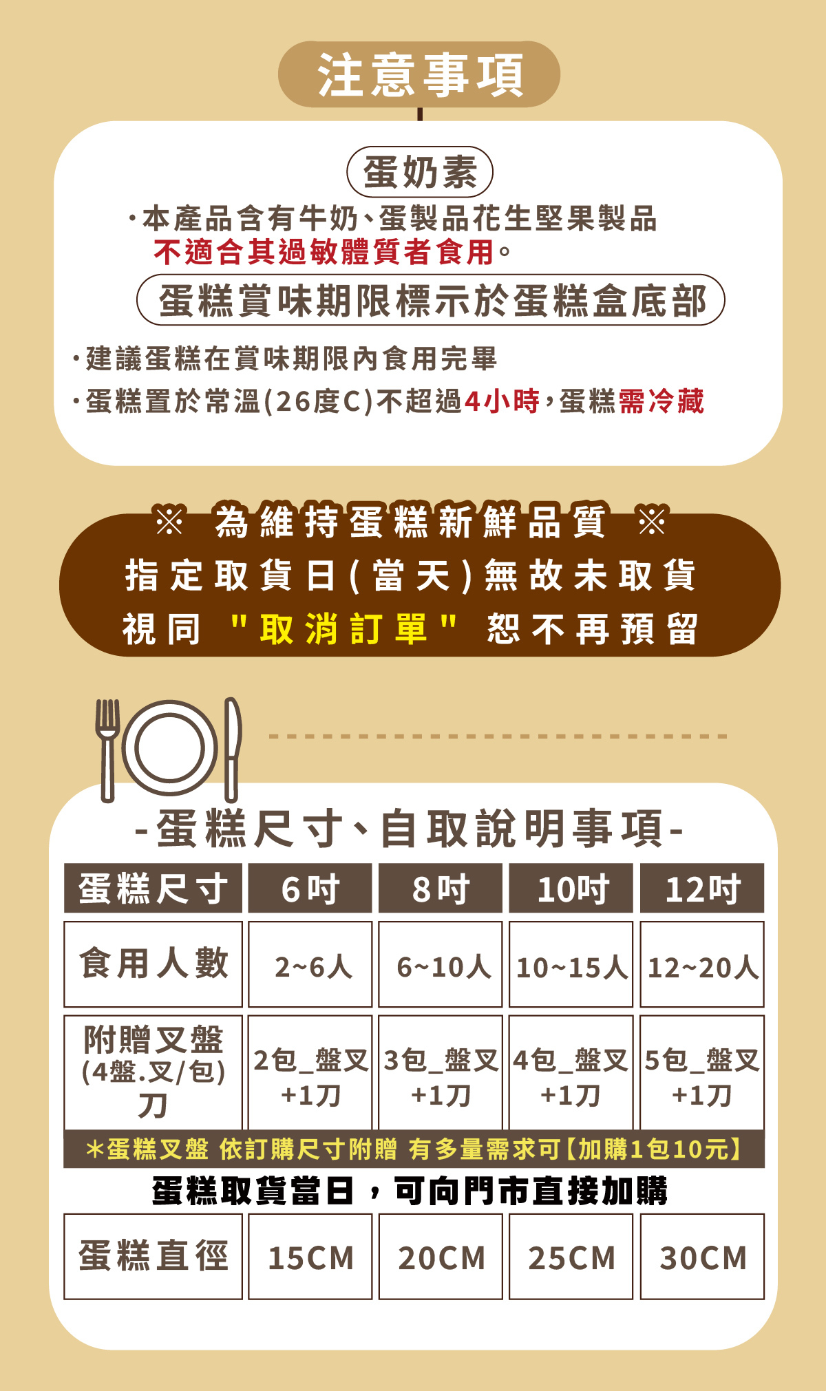 ⚠️ 因應訂單作業流程,商品名稱與規格恕無法客製變更。蛋糕裝飾品、水果擺設請依門市現場為主,將因季節與備料狀況略有差異,敬請見諒。