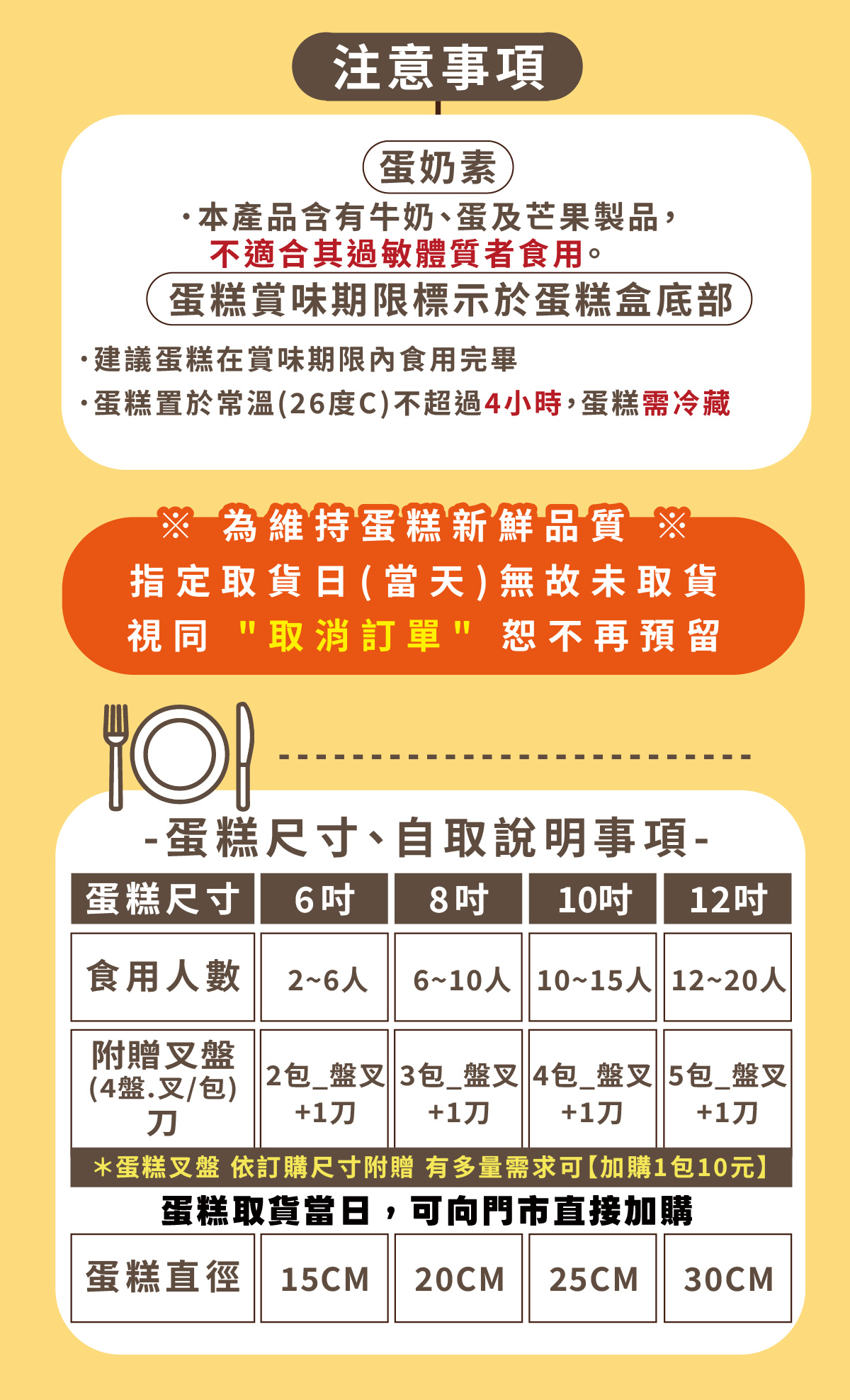 ⚠️ 因應訂單作業流程,商品名稱與規格恕無法客製變更。蛋糕裝飾品、水果擺設請依門市現場為主,將因季節與備料狀況略有差異,敬請見諒。