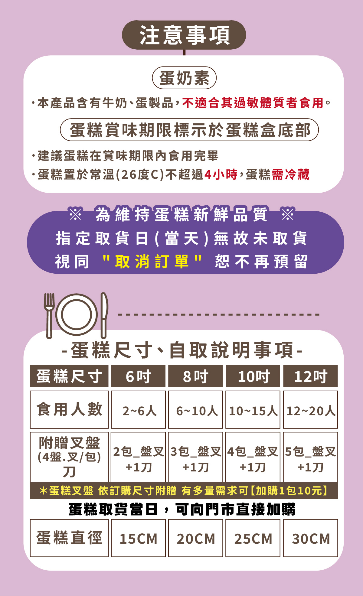 ⚠️ 因應訂單作業流程,商品名稱與規格恕無法客製變更。蛋糕裝飾品、水果擺設請依門市現場為主,將因季節與備料狀況略有差異,敬請見諒。