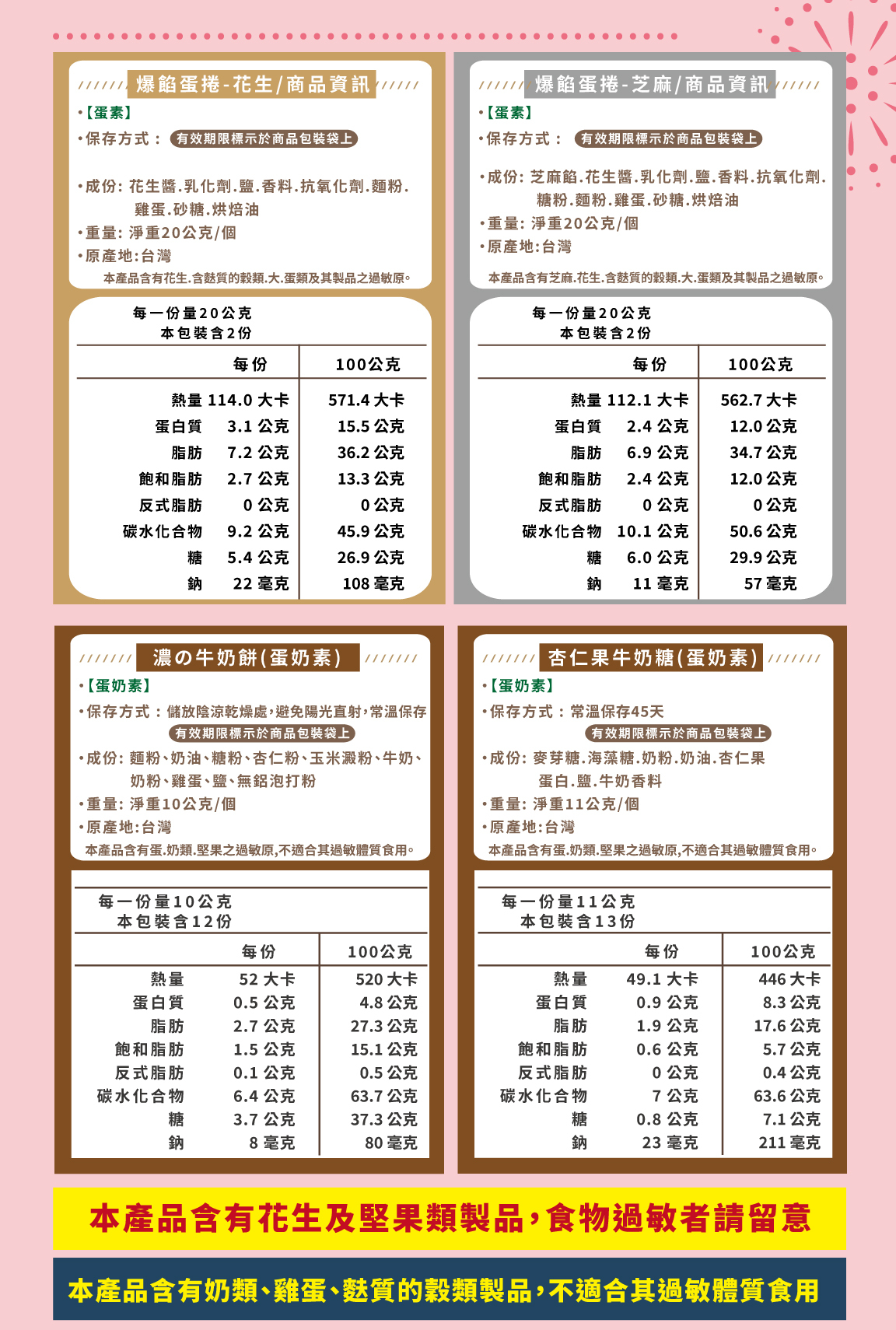 ※本產品含有花生及堅果類製品,食物過敏者請留意