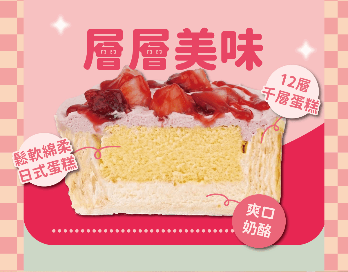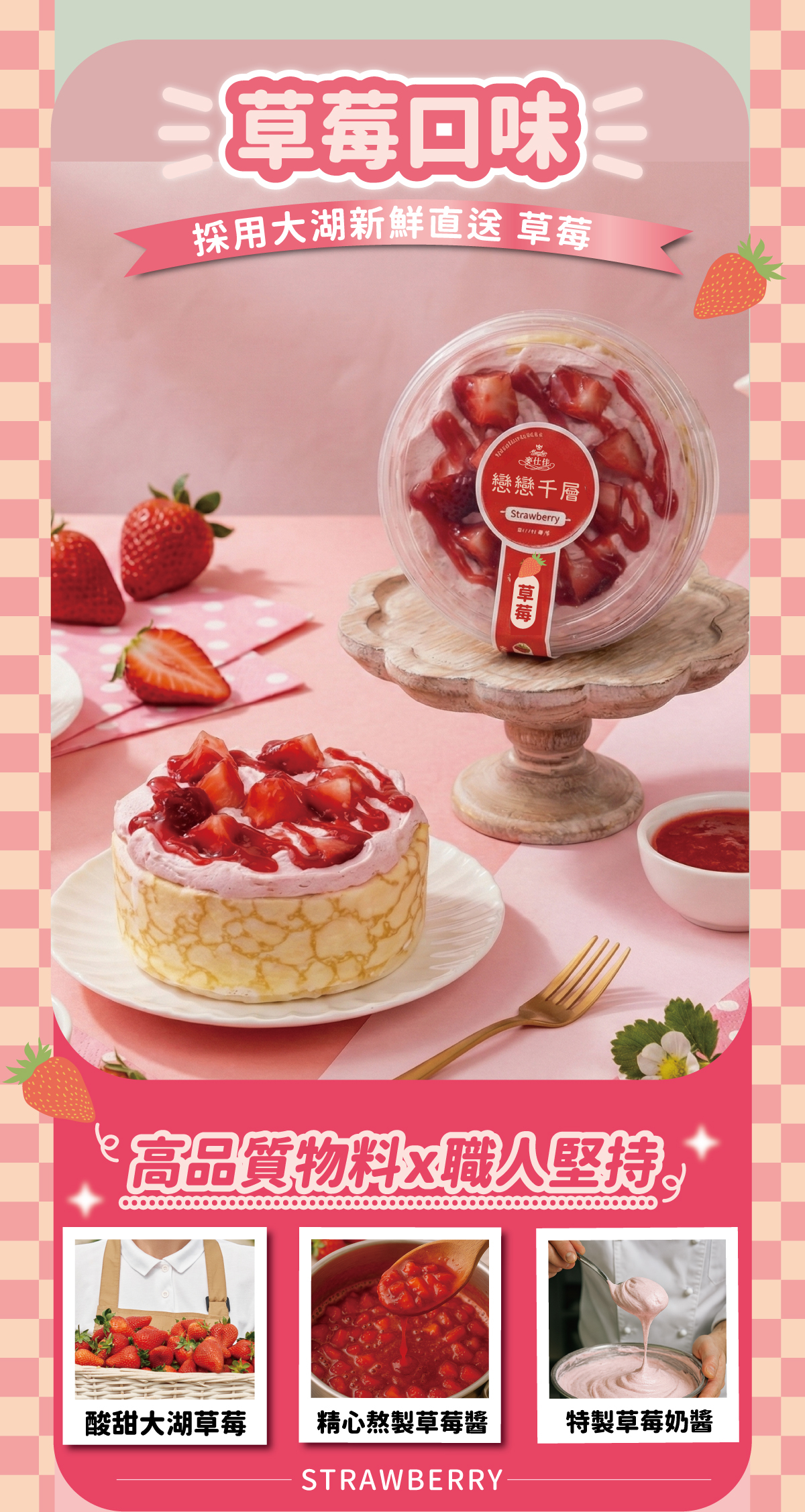 使用產地直送的大湖草莓,酸甜多汁、果香突出,每一口都吃得到天然的草莓香氣。