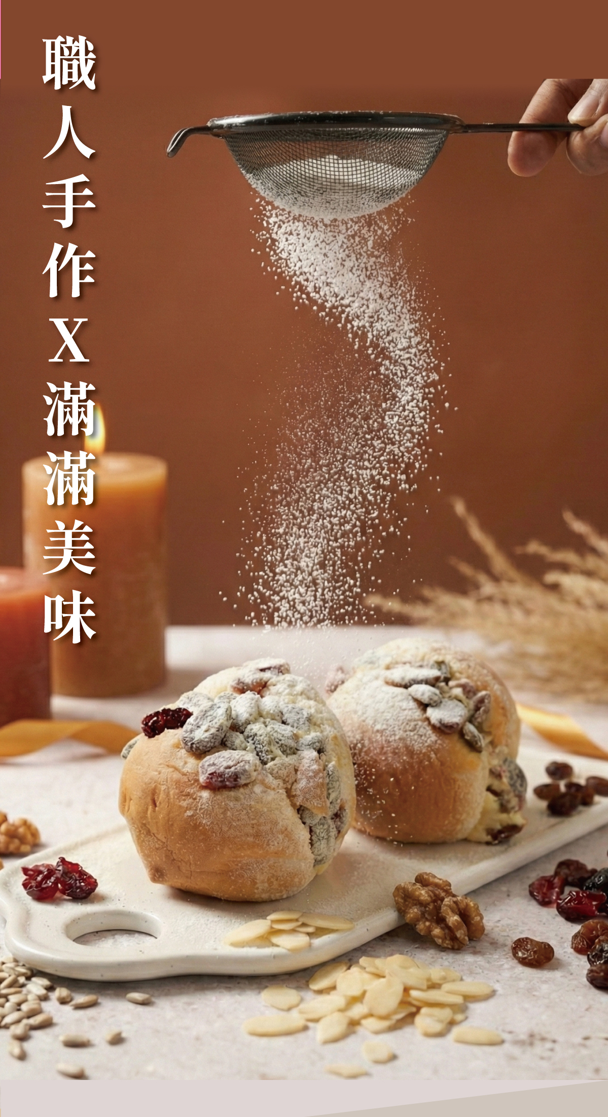 嚴選葵花子、杏仁片、蜜核桃帶來的酥脆堅果香,佐以蔓越莓乾、葡萄乾等果乾的酸甜嚼勁。