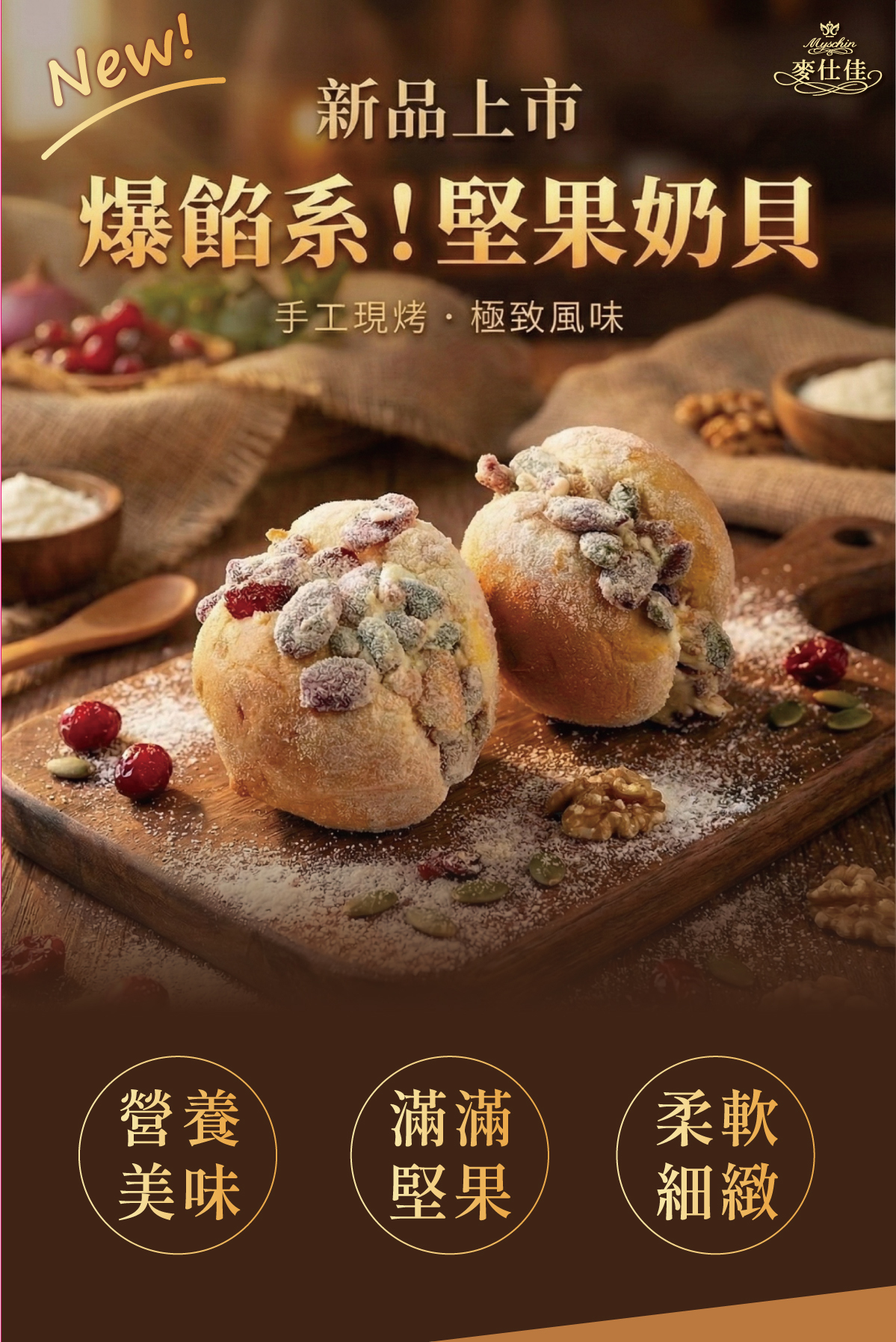 經典再升級,撒上豐富原物料,打造出這款兼具健康與美味的夢幻逸品——堅果奶貝。