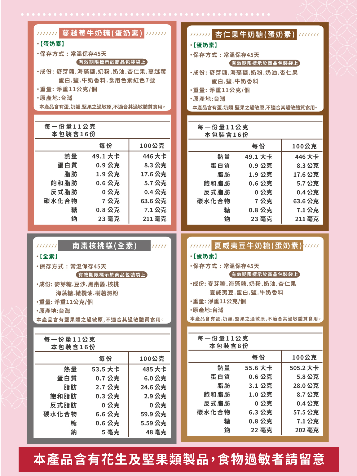 ※本產品含有花生及堅果類製品,食物過敏者請留意