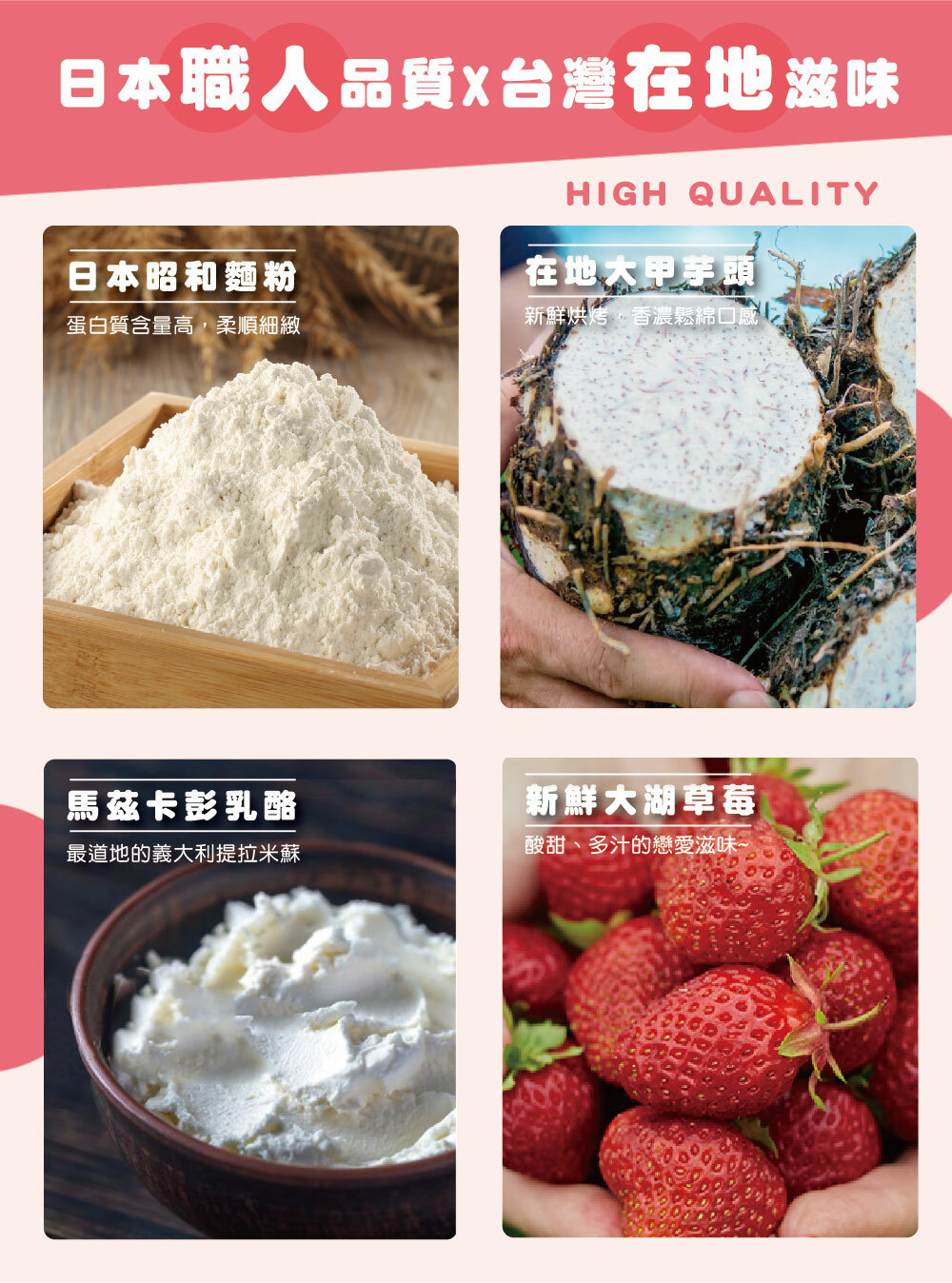 ✅ 在地美好:每日進貨 100% 新鮮大湖草莓、大甲芋頭