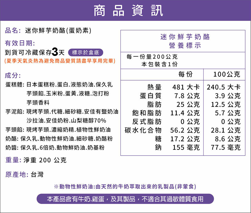 ※到貨可冷藏保存約3天 (以盒底標示為準)